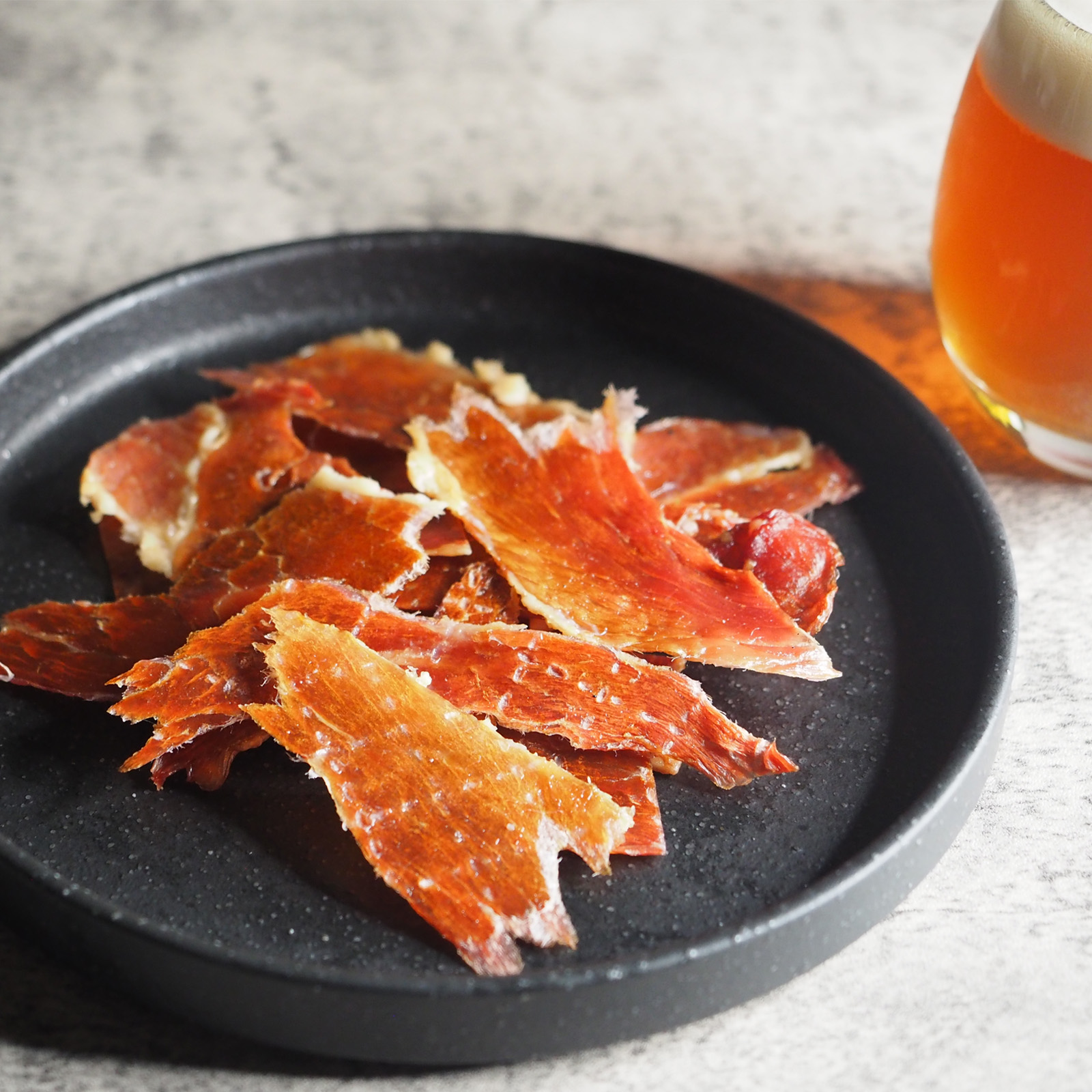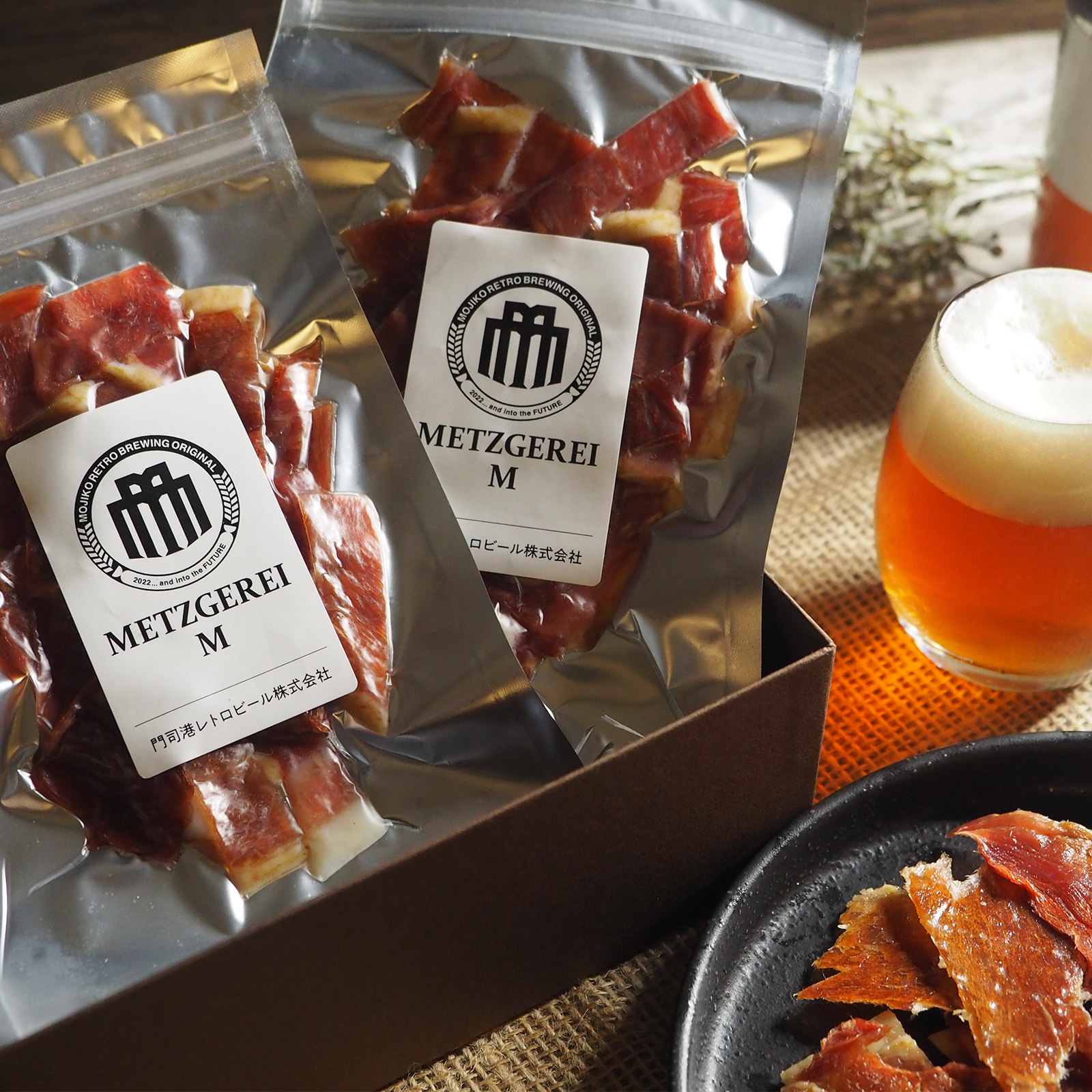 耳納あかぶたのポークジャーキー¥980 (税込) 🥇ドイツ国際食肉加工コンテストIFFA「金賞受賞」 MOJIKO BEERが作る「究極のポークジャーキー」うきは市のブランド豚「耳納あかぶた」を使い、素材の美味しさを際立たせるためにあえて味付けは「塩」のみ。この肉質、噛みごたえ、ビールとの相性、全てが究極。 詳しくはこちら 耳納あかぶたのポークジャーキー個 購入する 商品コード: pj50 カテゴリー: メツゲライM 説明 説明 商品名:耳納あかぶたのポークジャーキー 名称:食肉加工品 内容量:50g 原材料名:豚肉(国産)、食塩/発色剤(亜硝酸Na)、(一部に豚肉を含む) 直射日光、高温多湿を避け冷暗所で保存 賞味期限:工場出荷より90日 FacebookX 関連商品 門司港ビール6本+メツゲライ7種セット ¥7,150 (税込) 購入する 門司港ビール6本+メツゲライ3種セット ¥5,060 (税込) 購入する [IFFA金賞銀賞受賞記念]メツゲライ4種&門司港ビール6本セット ¥5,800 (税込) 購入する 門司港ビール6本+メツゲライ5種セット ¥6,160 (税込) 購入する